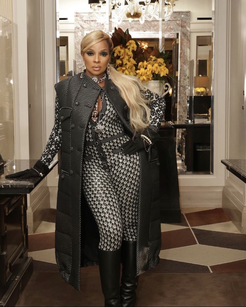 In honor of NYFW & Black History Month; I’d like to give auntie Mary (IYKYK) , a legend [not up for debate EVER] – I’d like to give her all her flowers. Specifically; As a legend of looks! One thing about Mary J Blige, she is going to give us a look with paired with her signature thigh high boot. We (me lol) L O V E the aesthetics of a thigh high.